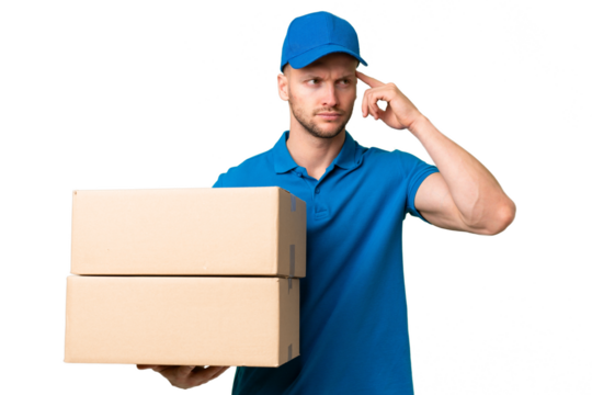 Delivery caucasian man over isolated background giving a thumbs up gesture