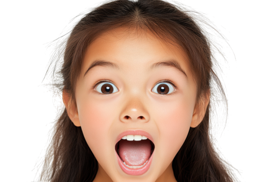 A Surprised Young Girl Expressing Joy and Excitement with Wide Eyes and an Open Mouth  isolated on transparent background