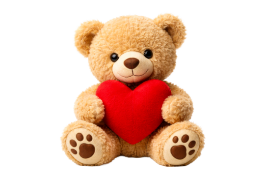 A cuddly light brown teddy bear holding a soft red heart symbolizes love and affection, perfect for celebrating Valentines Day, anniversaries, or expressing warm sentiments.