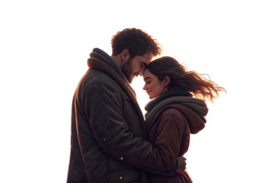 Happy couple embracing with joyful expression on transparent background