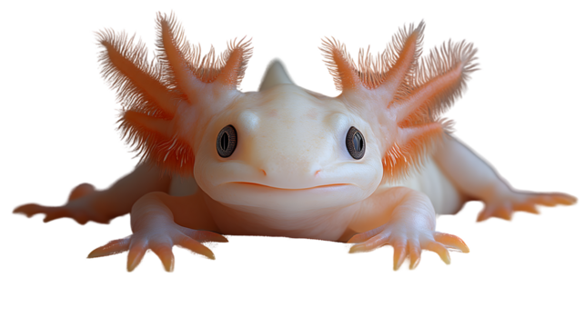 A charming amphibian with feathery appendages and expressive eyes ideal for nature fantasy a