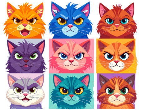 Twelve cartoon monster faces with expressive Halloween emotions, isolated on white background