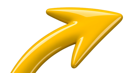 Glossy vibrant lemon color arrow pointing upward isolated on a transparent background