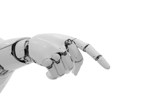 Futuristic robot arm extending finger on transparent background