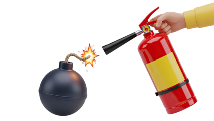 Red fire extinguisher blow smoke isolated -  on white background.PNG AI