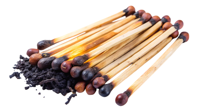 Set of Burned Extinguished Matches Isolated on White Background – Transparent PNG, AI Generated
