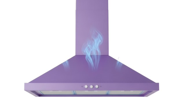 Modern purple range hood isolated PNG on transparent background, kitchen appliance for cooking and ventilation, contemporary design