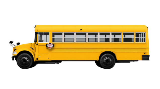 School Bus: A bright yellow school bus is ready for its daily route, signifying education and childhood, capturing a sense of community and safe transportation for children.