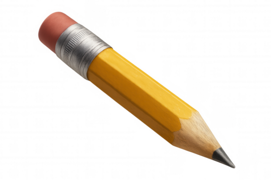 Yellow wooden pencil with pink eraser and graphite tip for writing, drawing, and school activities