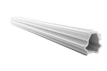 White plastic extrusion profile, industrial design, 3D render, isolated background, manufacturing