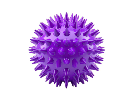 A 3D rendered, spiky orb. It is purple, with multiple protrusions against a black background