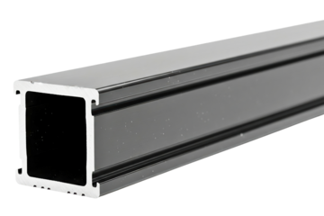 Gray extruded aluminum profile with internal locking mechanism on a transparent background