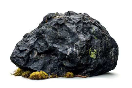a rock with moss growing on it cutout and isolated on transparent background