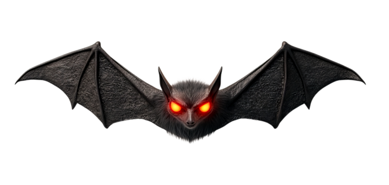 Dark sculpted bat with outstretched wings against black isolated on a transparent background creature