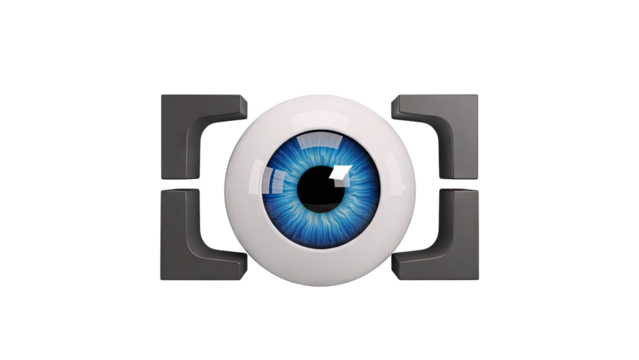 Eye icon symbolizing vision, view, looking, observation, and digital security solution on transparent background