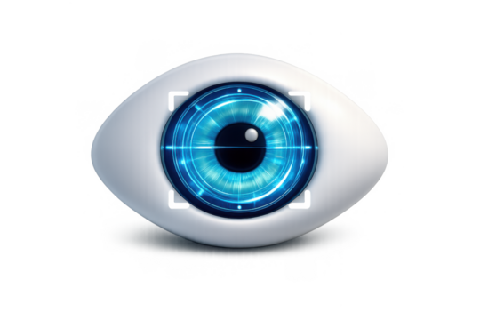 Eye icon symbolizing vision, view, looking, observation, and digital security solution on transparent background