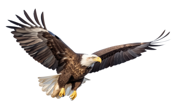 American Bald Eagle Flying Side View Isolated on Transparent Background PNG