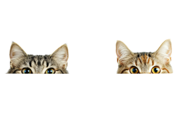Curious tabby cats peeking playfully over an edge on transparent background — high-resolution PNG cutout ideal for web banners, pet-themed social media graphics, and e-commerce overlays