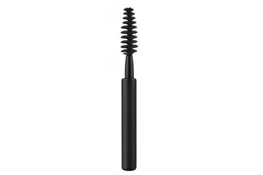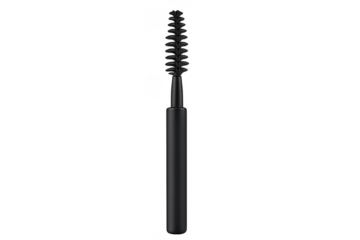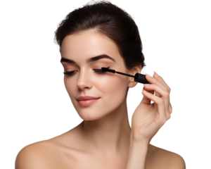 transparent background a beautiful woman applying black mascara with long, thick lashes isolated
