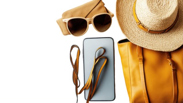 A closed brown leather case for eyeglasses or sunglasses with a snap button closure isolated on a transparent background