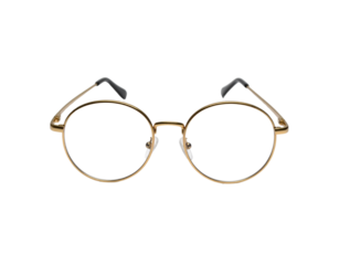 Gold Metal Frame Round Eyeglasses with Black Temples.