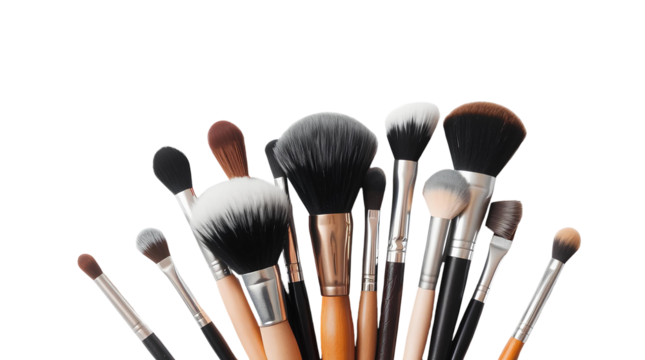 Photograph of Makeup Brush Collection Arranged in Semi-Circle – Isolated PNG