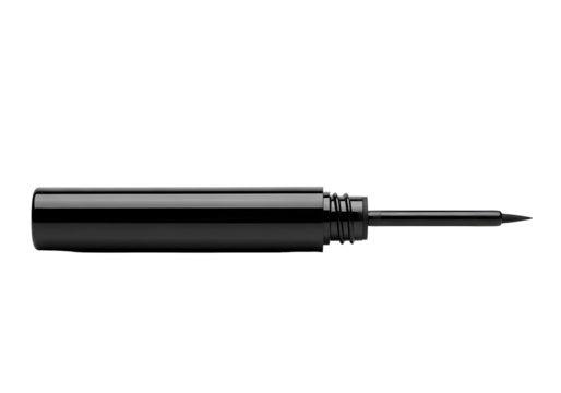 Open the tube of black liquid eyeliner with a fine-tip applicator brush isolated with transparent background