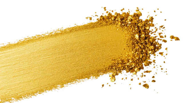 Golden eyeshadow smear, glittering makeup texture, gold glitter, cut out transparent