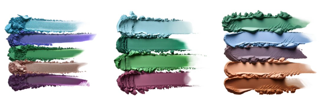 Set of brush strokes of glitter and matte eyeshadows on a blank background on a blank background