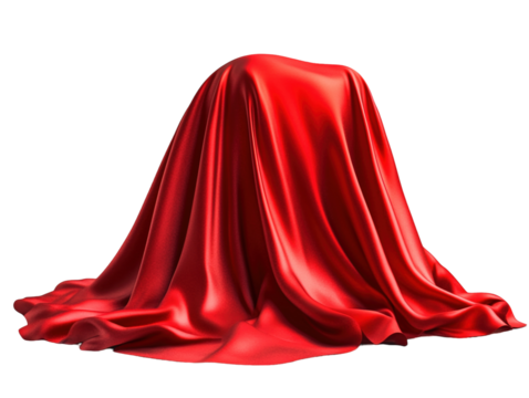 Vibrant red ribbon banner with a smooth satin texture and elegant folds on transparent background.