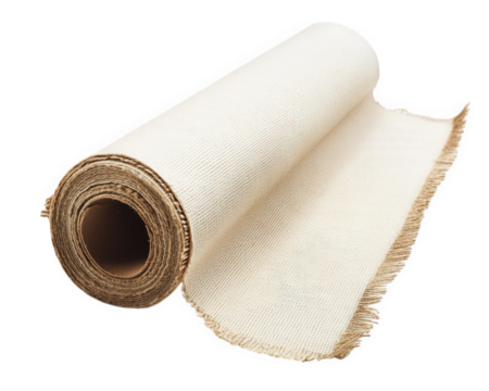 roll of canvas fabric ready for painting, showcasing textured surface and natural color. Ideal for artists and DIY projects, this versatile material inspires creativity
