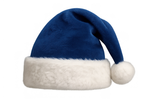 Blue santa hat with white fur brim and pom-pom, representing holiday cheer and winter celebrations