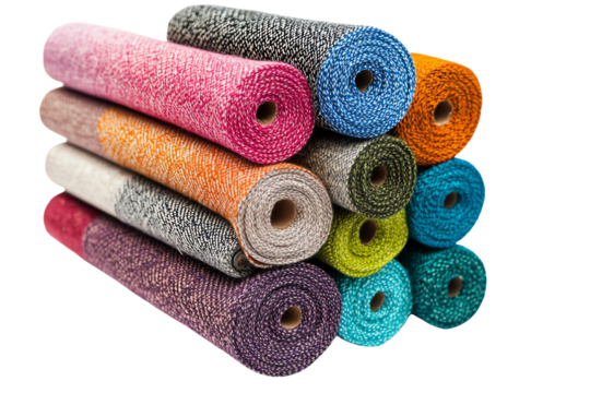 Colorful fabric rolls arranged neatly for crafting projects isolated on transparent background