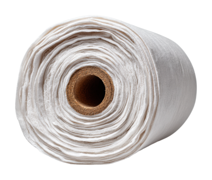 Unrolling white fabric roll for craft projects textiles isolated on transparent background