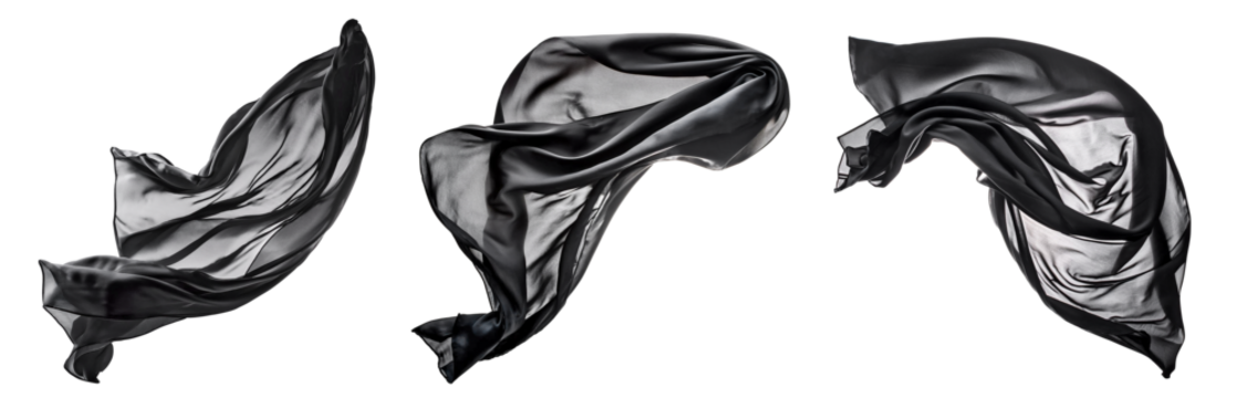 Dynamic silhouette jumping with flowing fabric on transparent background