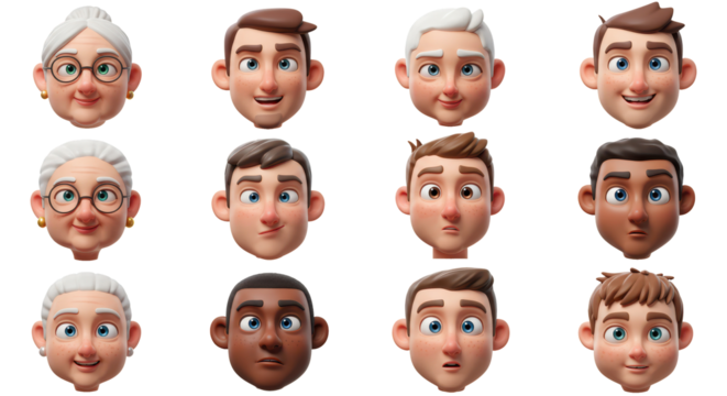 3D illustration of smiling people close up portraits set. Cute cartoon business men and women avatars, multi ethnic male and female characters faces, isolated on white