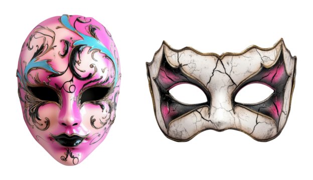 Venetian carnival masks pink and white isolated on a white background traditional festive costume accessory masquerade disguise theater party celebration Mardi Gras fashion colorful decorative face