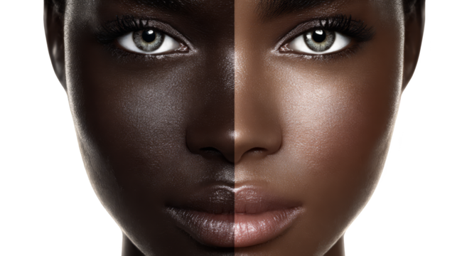 Abstract colorful paint strokes forming a human face isolated on transparent background. Portrait of a person with vibrant splashes of colorful paint across their face isolated on white background.