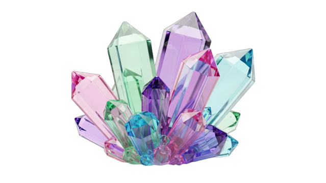 Transparent pastel crystal cluster with sparkling icons