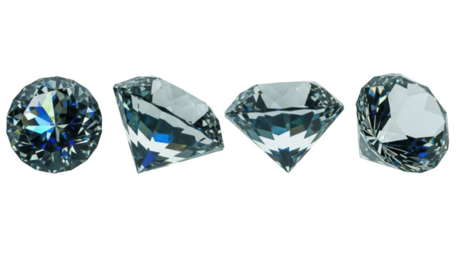 Faceted gemstone reflecting blue highlights against transparent background