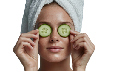 Refreshing Spa Treatment with Cucumber Slices Over Eyes for Skin Care and Relaxation at Home or Spa Therapy