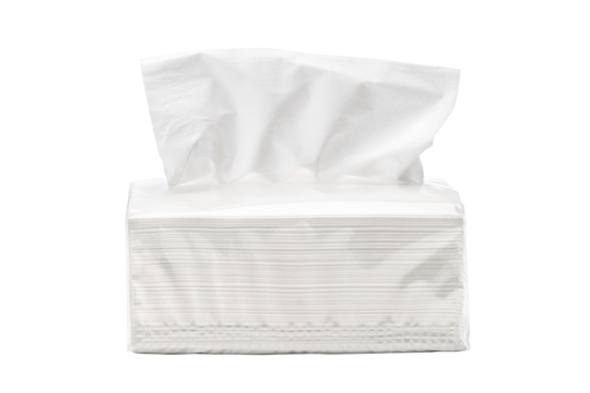 soft pack of white facial tissue papers isolated on white background.