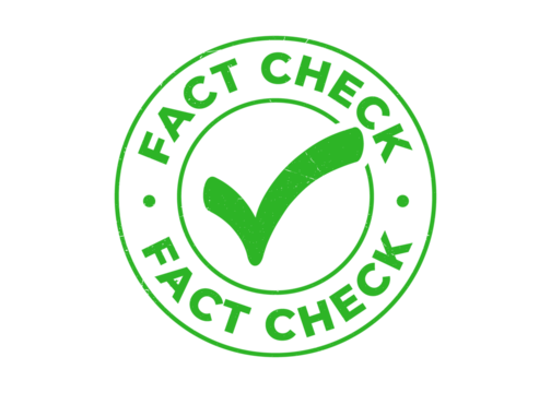 Fact check stamp PNG image design. Rubber, seal, green, vintage effect, textured, checkmark, with transparent background