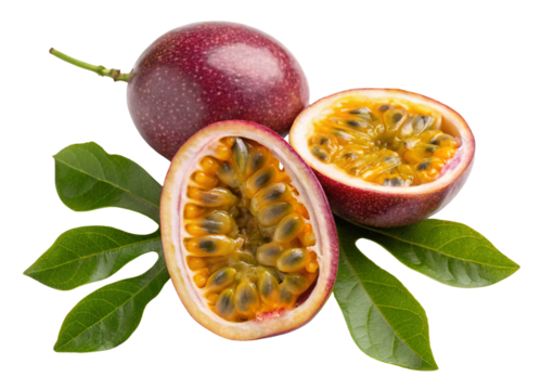 Passion fruit benefits and nutrition facts of fresh passion fruits on white background close up view