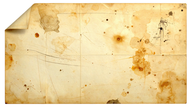An old, crumpled piece of paper with ripped edges on a transparent background