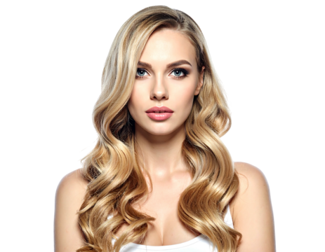 Blonde hair flowing in the wind on a transparent background