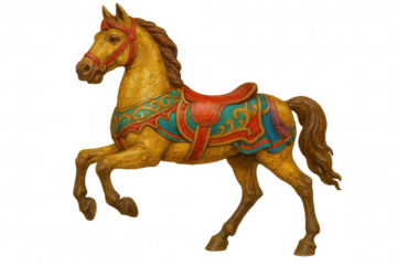 a plastic horse of a carousel , isolated on transparent background - generated by ai