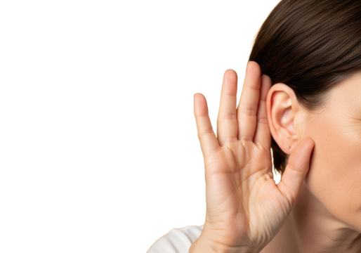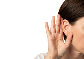 Transparent woman listening attentively gesture