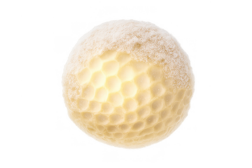 Golf ball covered with frost, symbolizing cold winter sport conditions and frozen game challenges