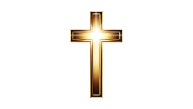 Golden glowing cross isolated on transparent background